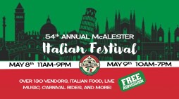 The 54th Annual McAlester Italian Festival is a 2 Day event!! Friday May 8, 2025 11AM-11PM (Indoor Vendor hours are 11am-9pm) and Saturday May 9, 2025 10AM-7PM!!